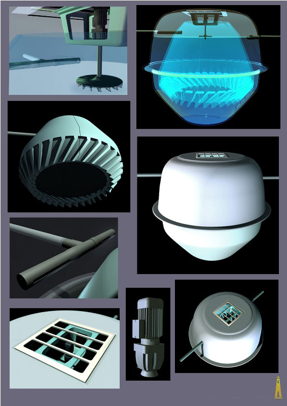 • بدنه دستگاه بقطر 2/60 متر و ارتفاع 2/30 متر است. بصورت دو مخزن داخل هم بوده كه بخشهاي هوادهي و ته نشيني اين سيستم محسوب مي شوند