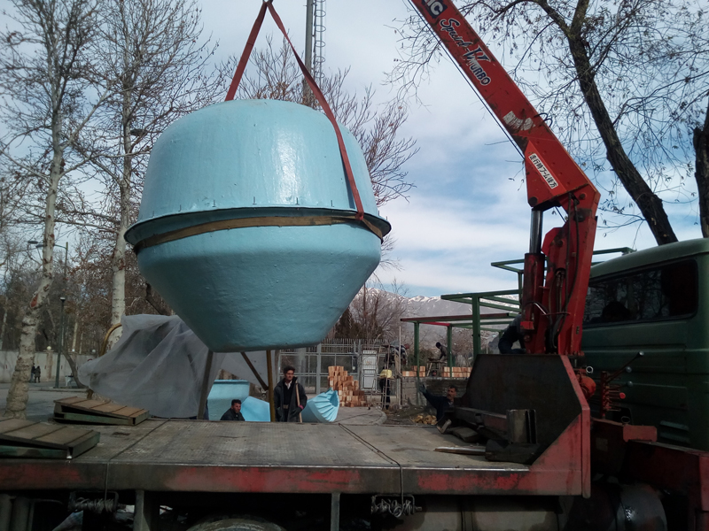 2) The body of the machine is 2.5 meters in diameter and 2.3 meters high and has two tanks inside which are the aerating and sedimentation parts of this system.